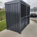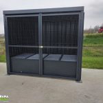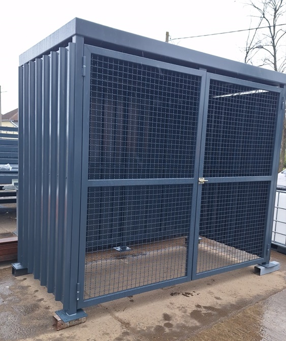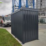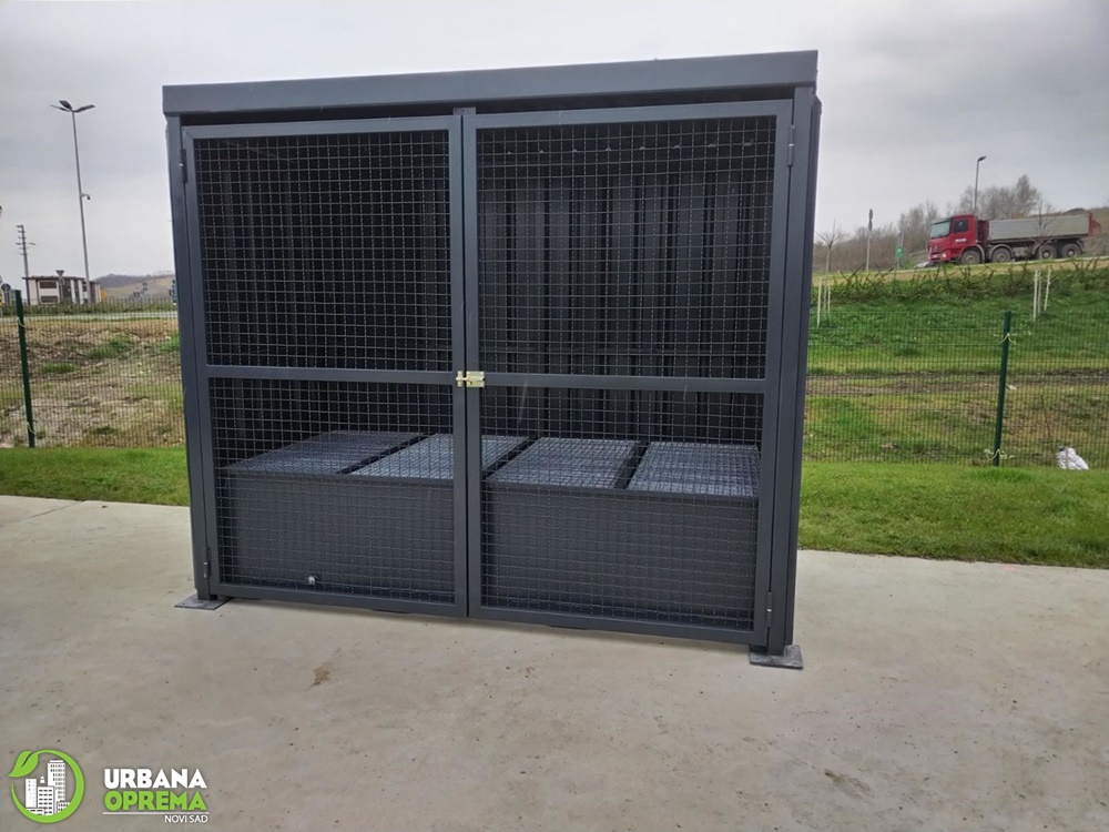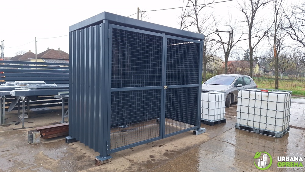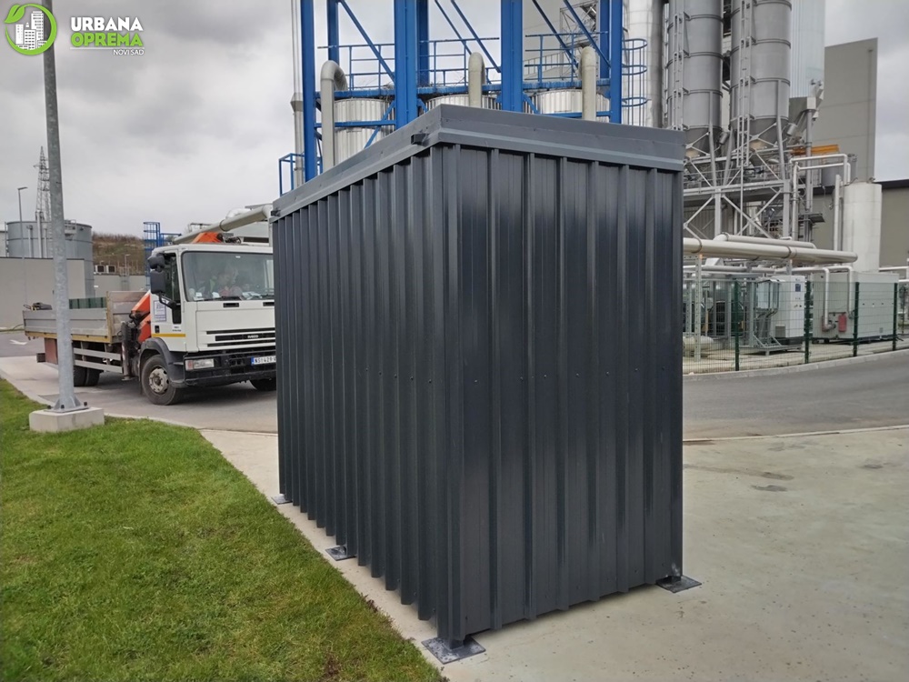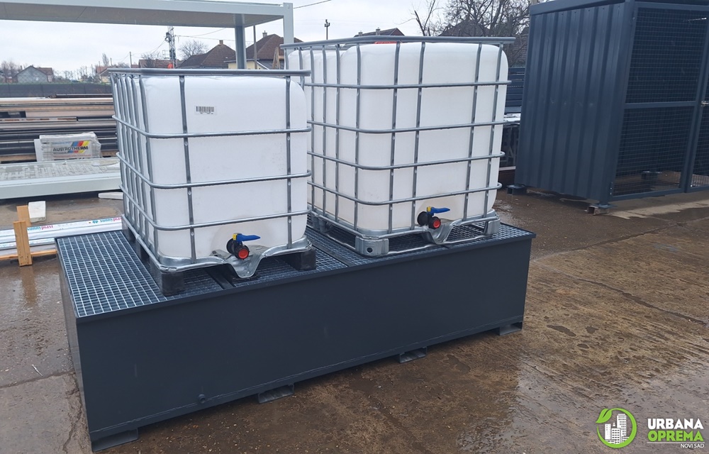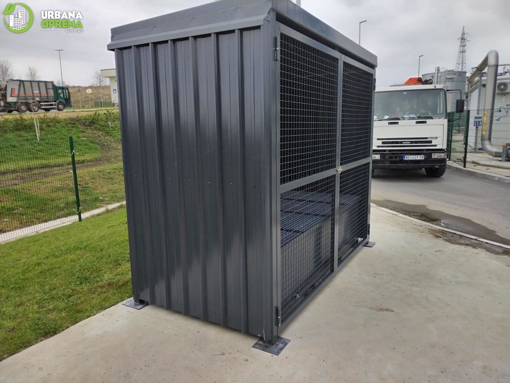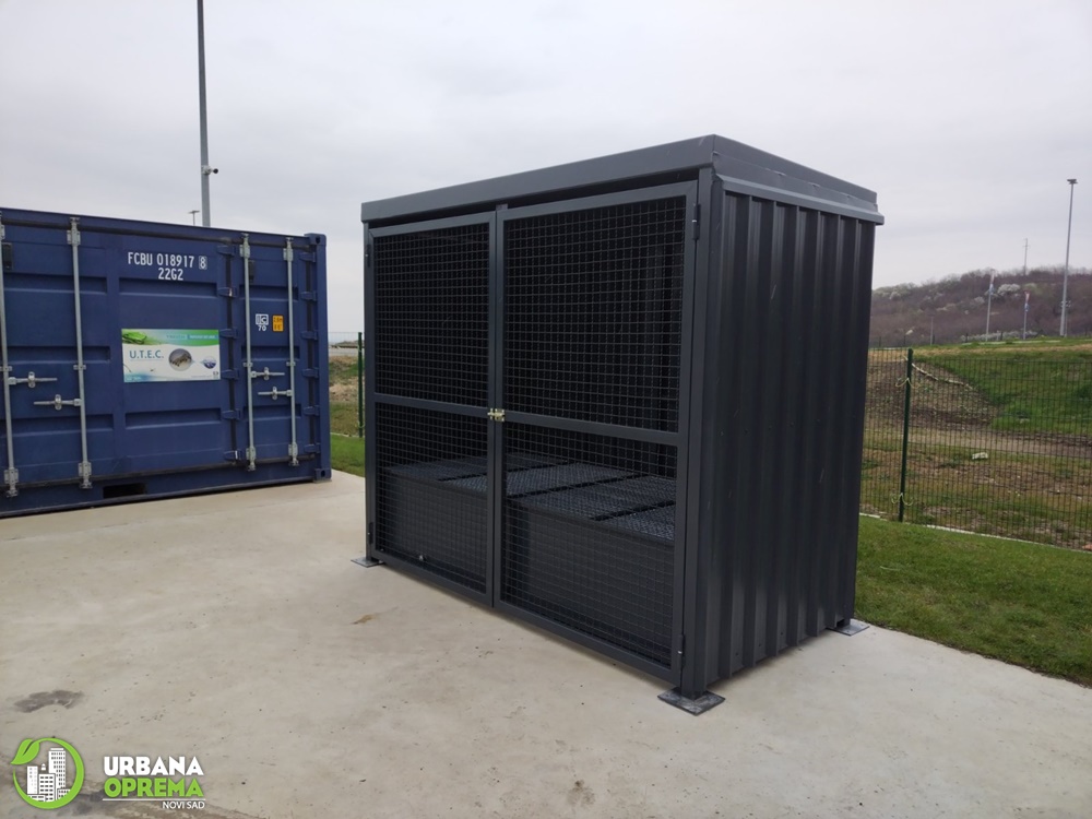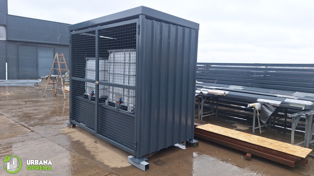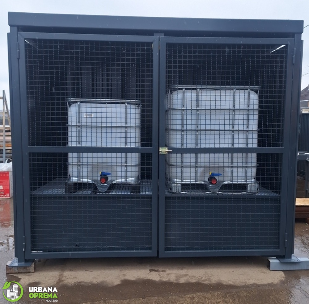 Gabaritne dimenzije 2700x13500x2500mm.Konstrukcija je izrađena od čeličnih cevi i limova. Skladište je obloženo trapeznim limom.Sa prednje strane su vrata, sa ispunom od grifovane žice i mogućnošću zaključavanja. U sklopu skladišta ugrađena je tankvana za 2 IBC kontejnera sa pocinkovanim rešetkama. Krov skladišta je izrađen od trapeznog lima. Konstrukcija je zaštićena epoksidno- poliuretanskim sistemom bojena u PU 250-50 RAL po izboru kupca.